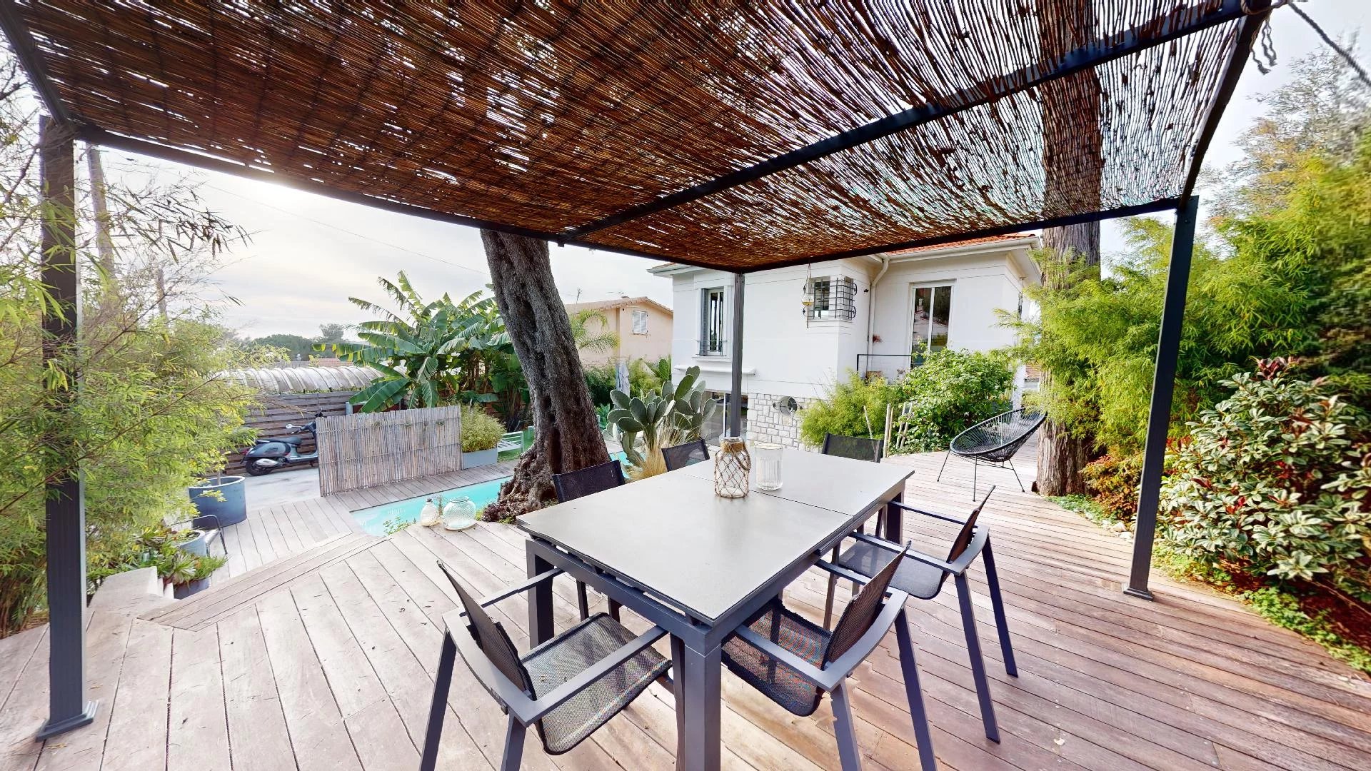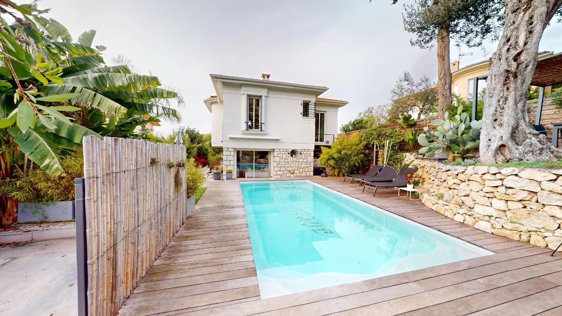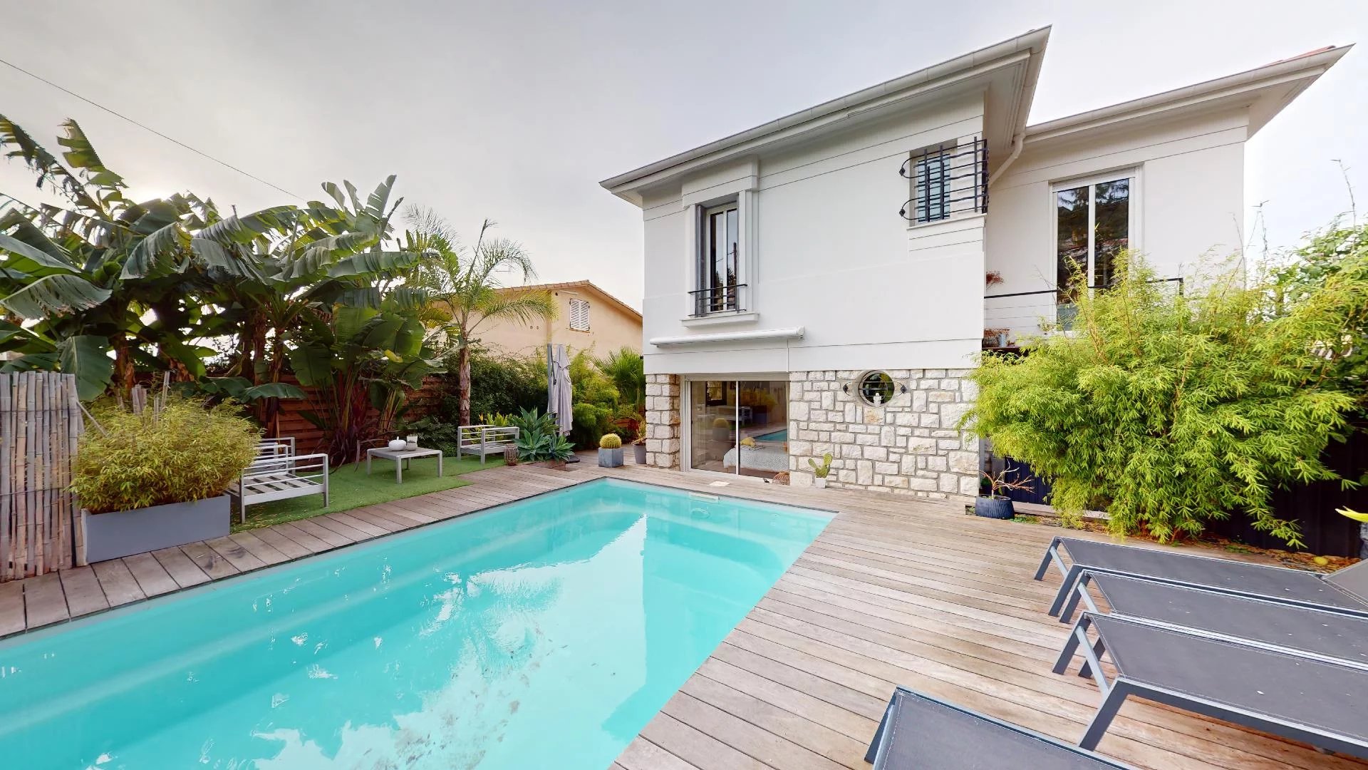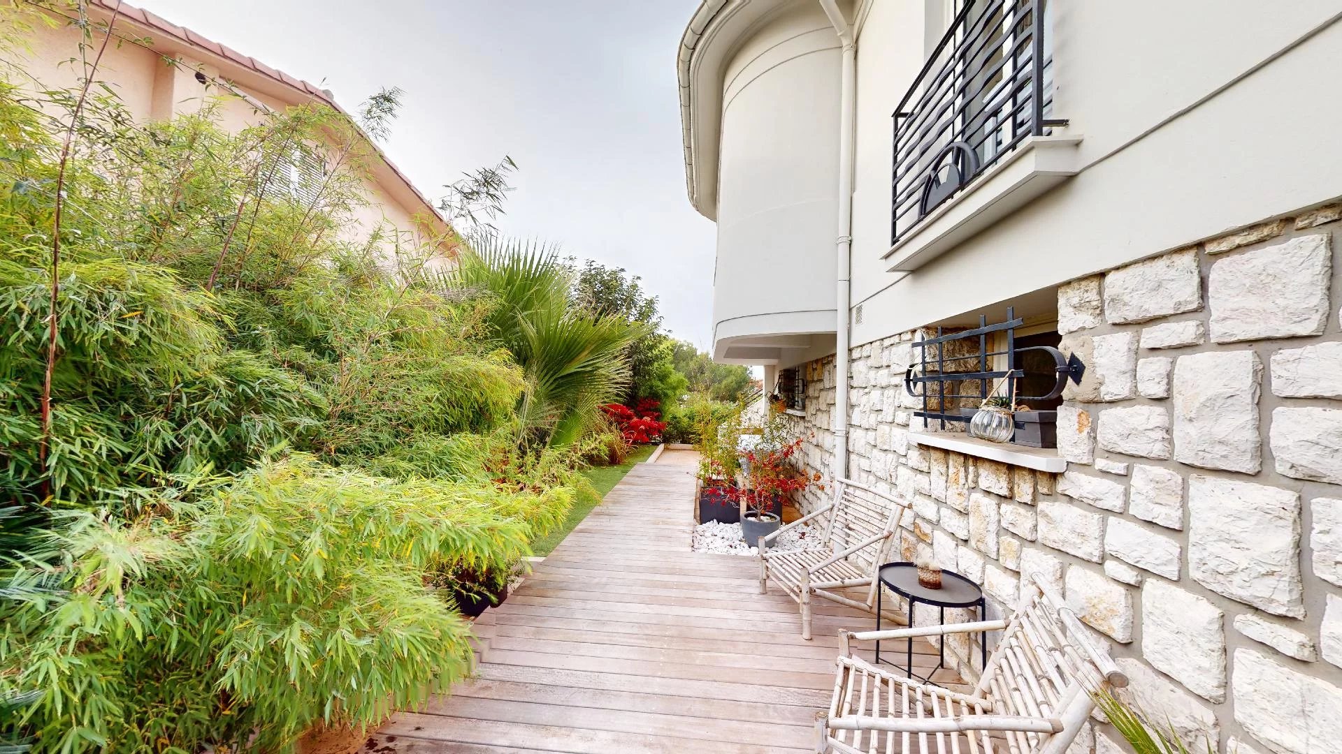 Regarding the exterior, this 400m2 garden has a 100m2 IPE terrace for your summer meals, a superb 3.5m/7m heated salt swimming pool, a relaxation area with garden furniture overlooking diverse and exotic vegetation and three large healthy cellars.