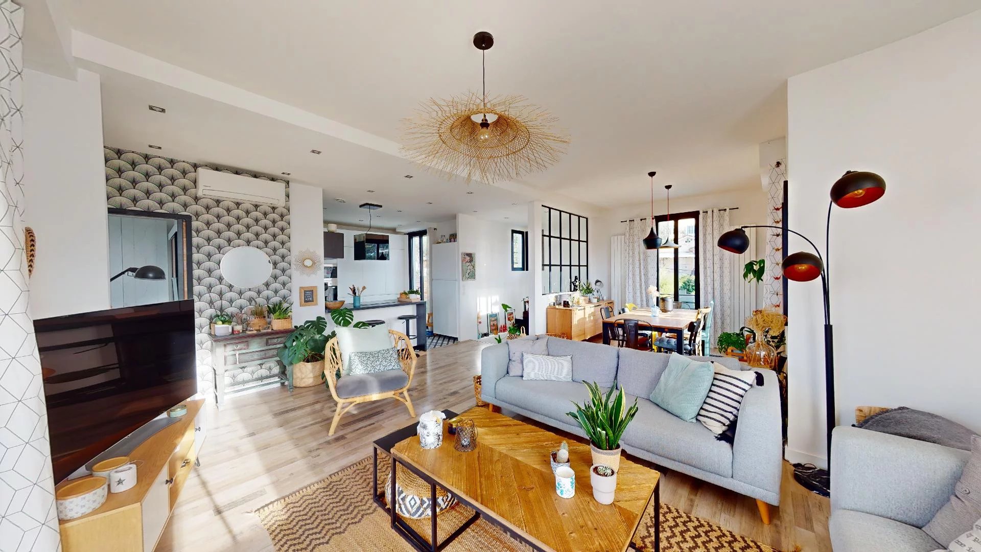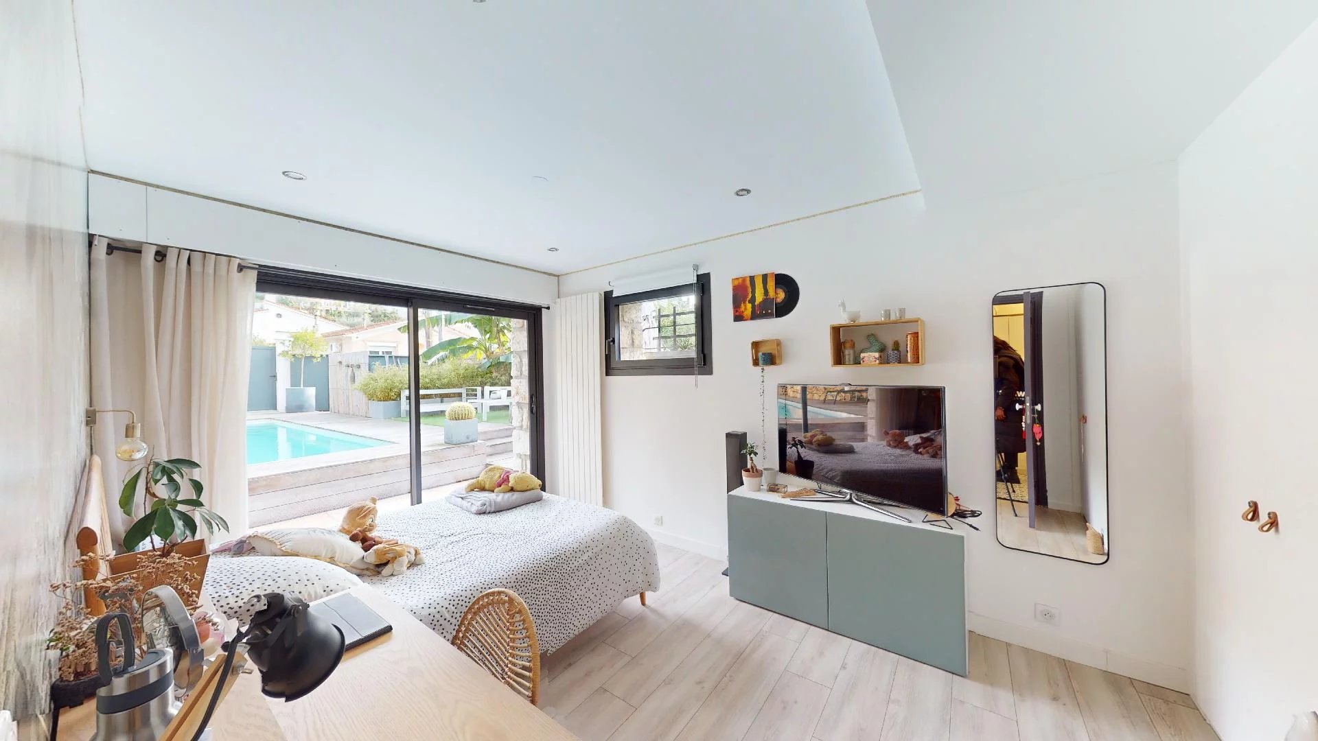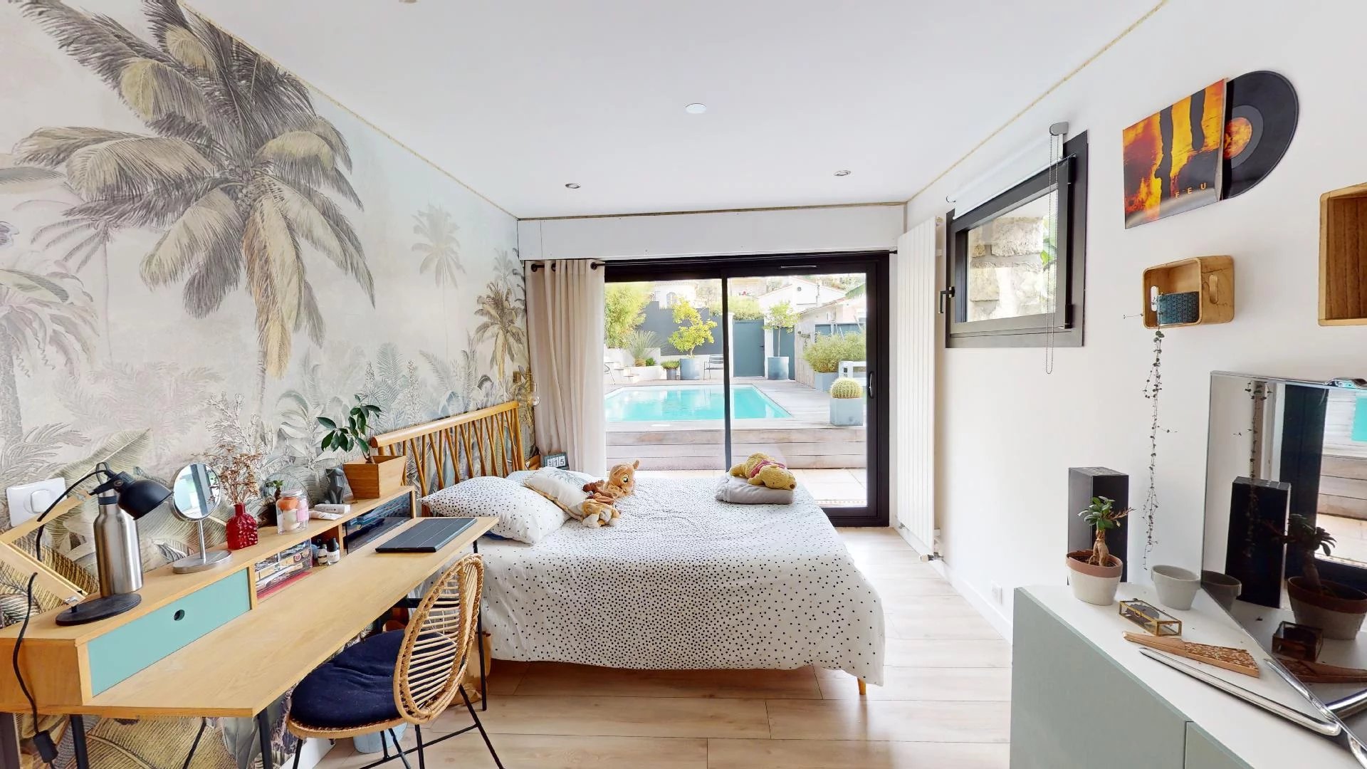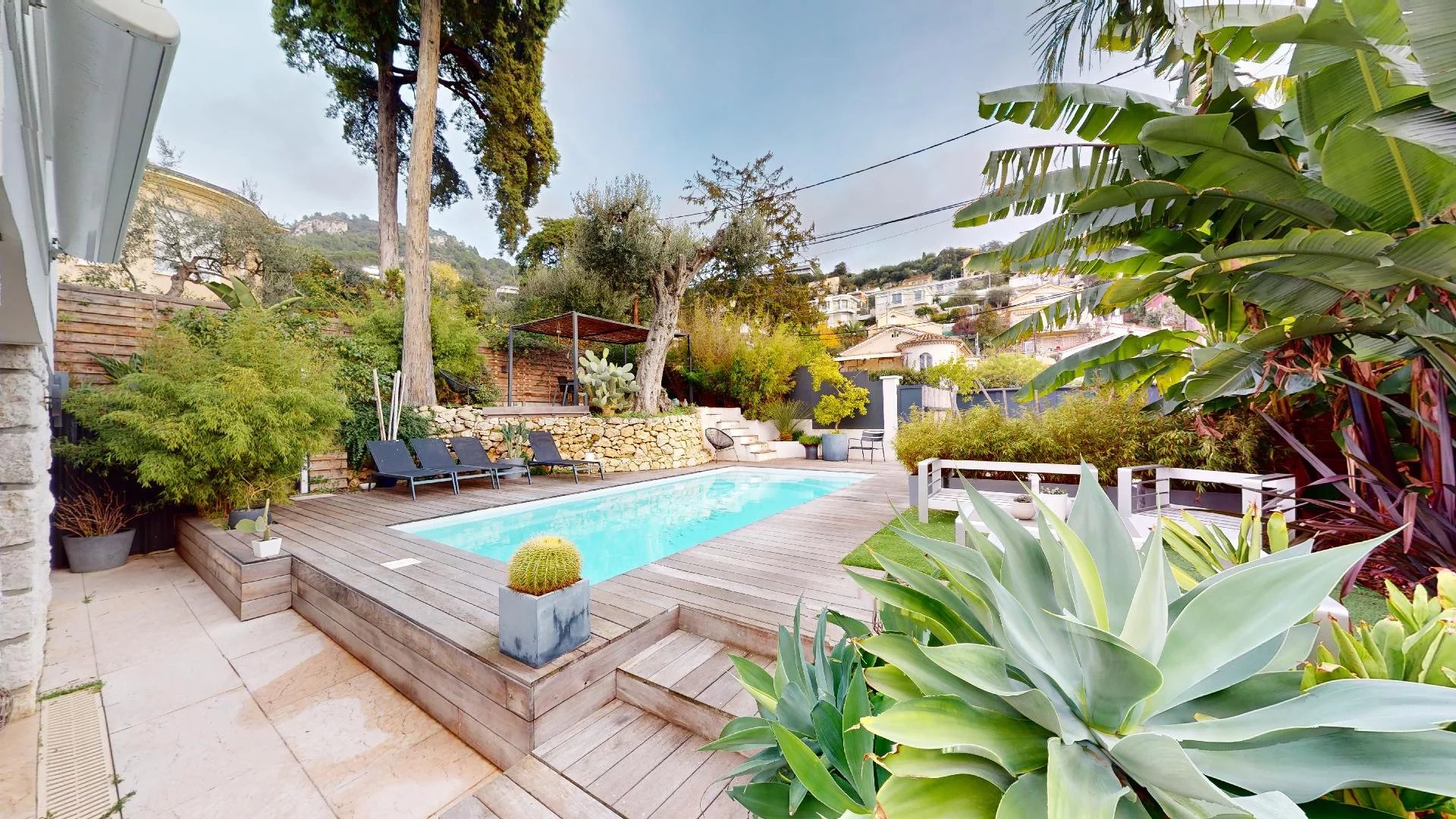 Regarding the exterior, this 400m2 garden has a 100m2 IPE terrace for your summer meals, a superb 3.5m/7m heated salt swimming pool, a relaxation area with garden furniture overlooking diverse and exotic vegetation and three large healthy cellars.