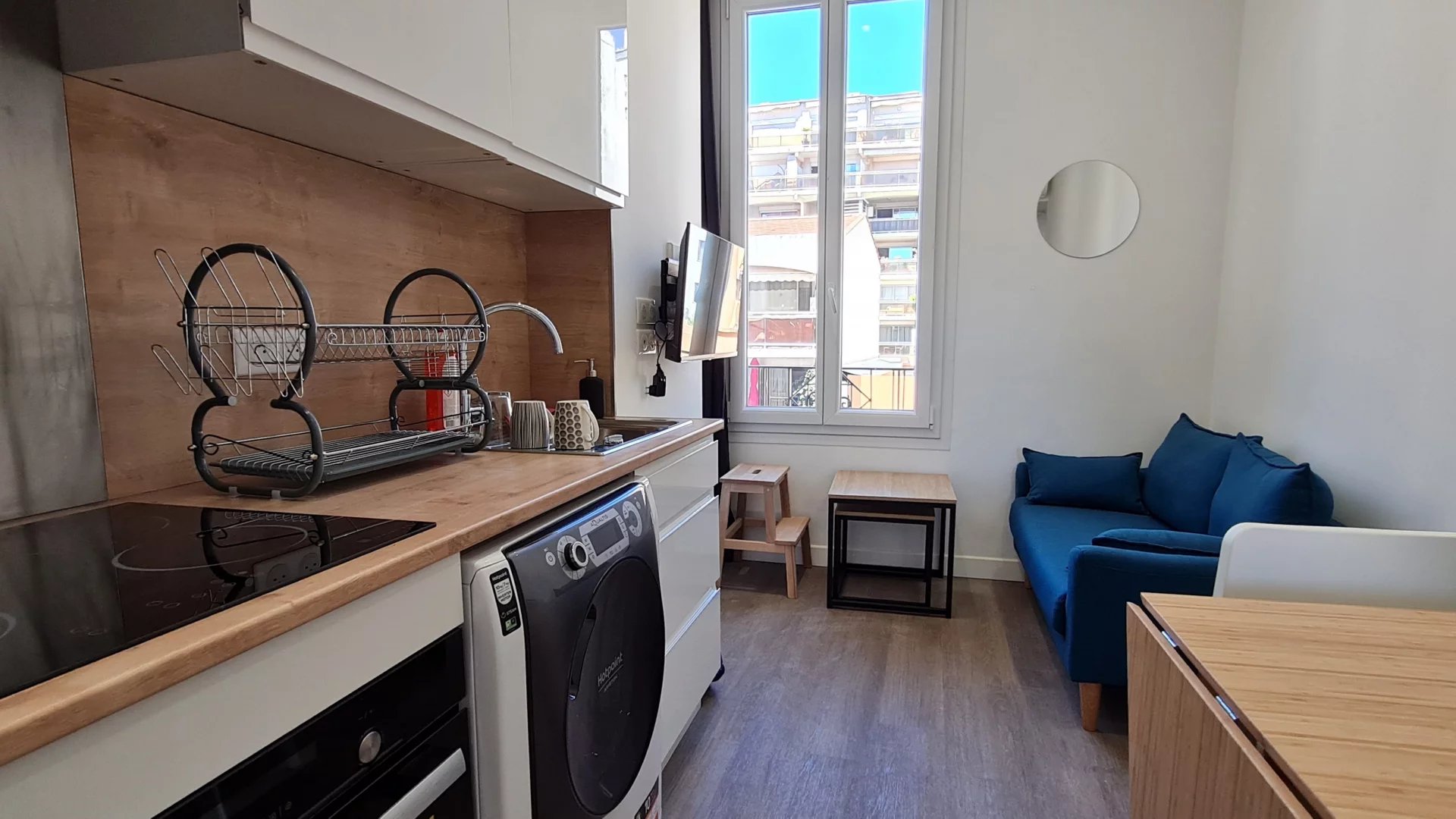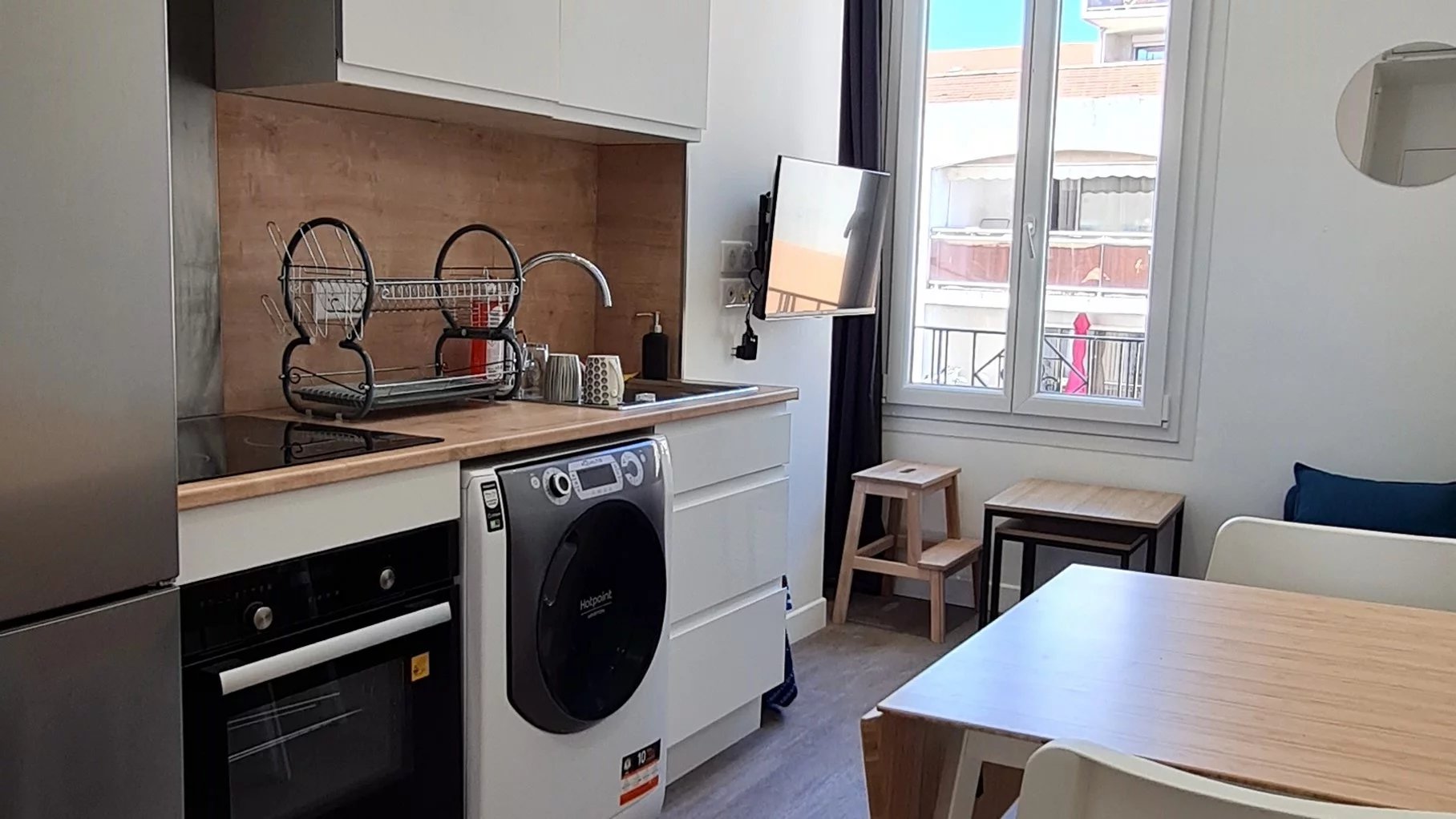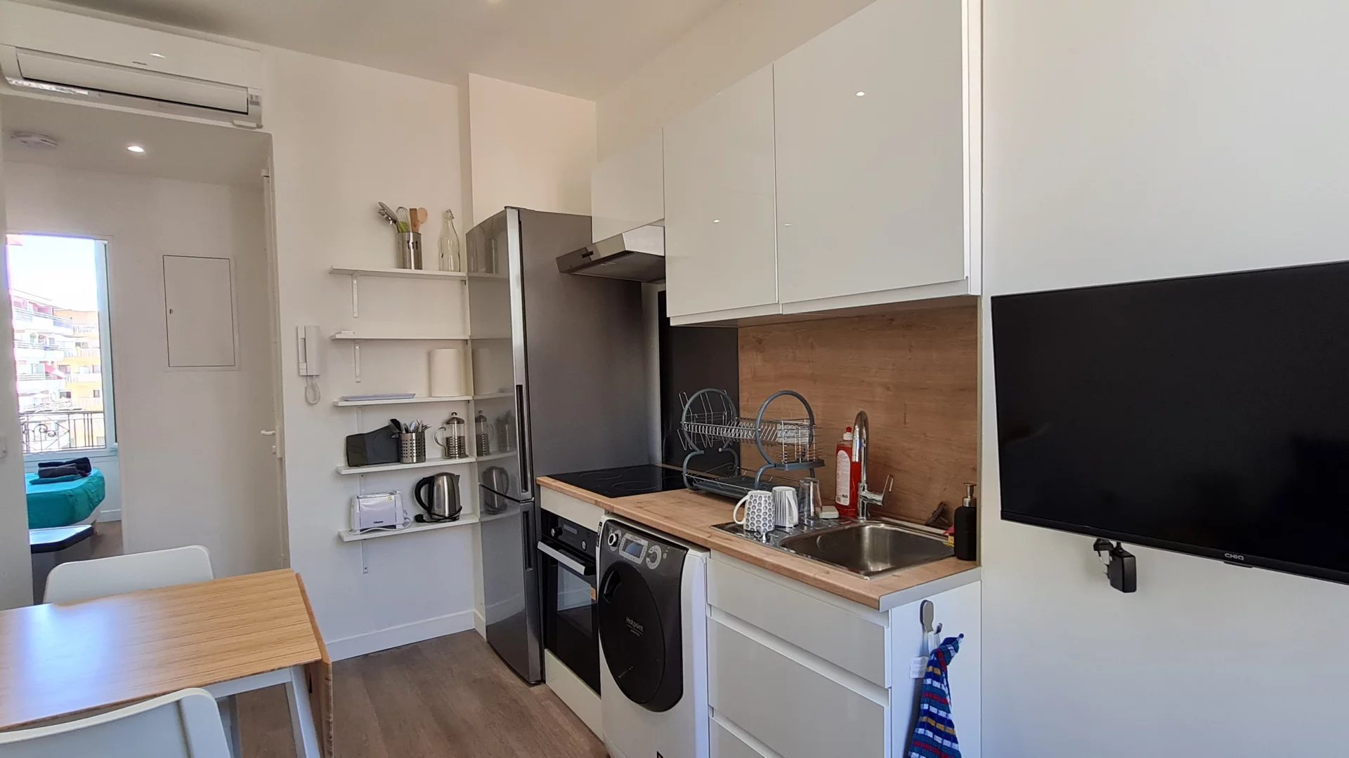 Configuration optimale sans aucune perte de place dans ce joli appartement atypique et fonctionnel au cœur d'un quartier recherché à l'ambiance méridionale, proche de la gare de Riquier et des lignes de bus n° 57, 601 pour MENTON et 607 pour MONACO.