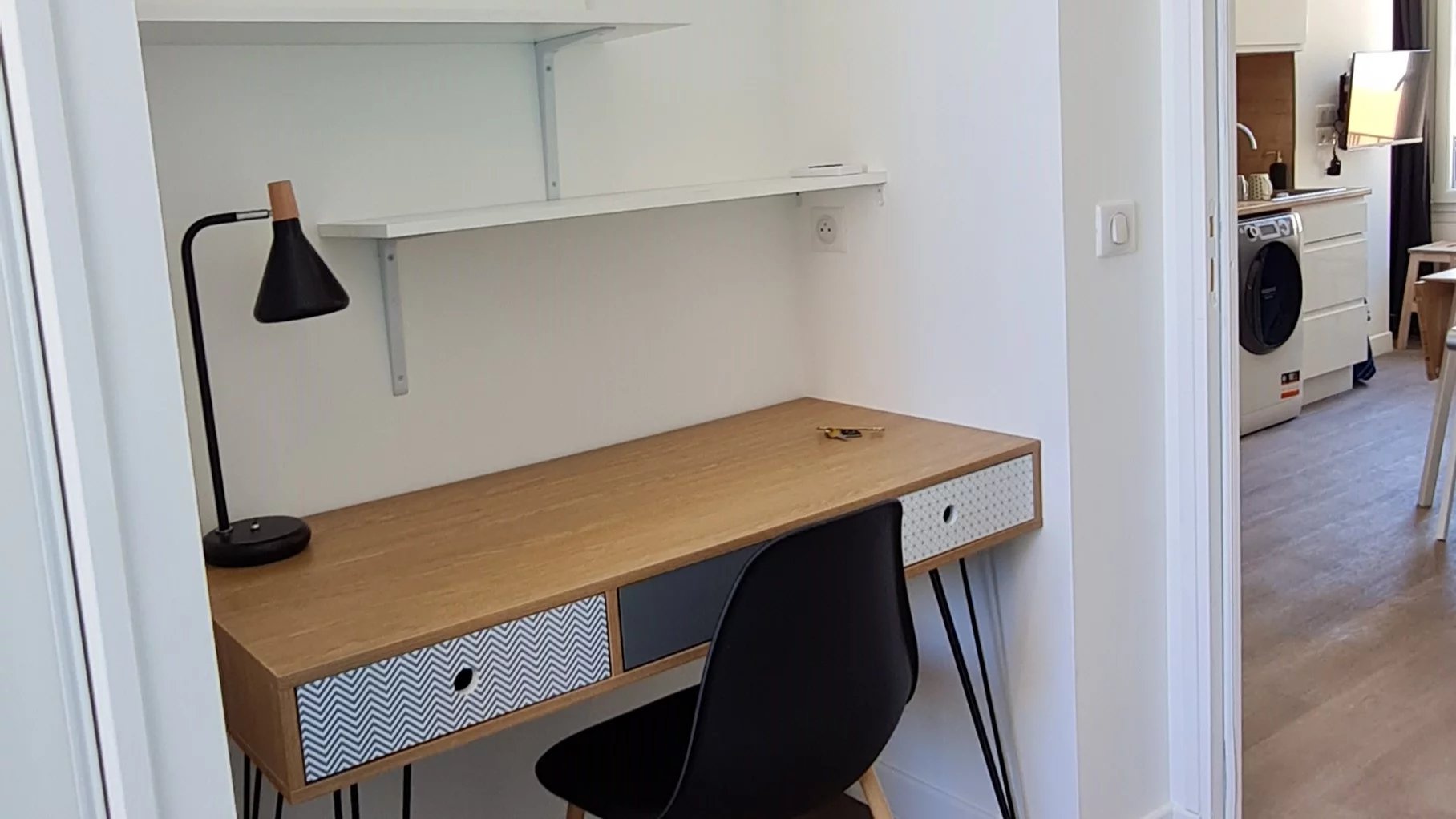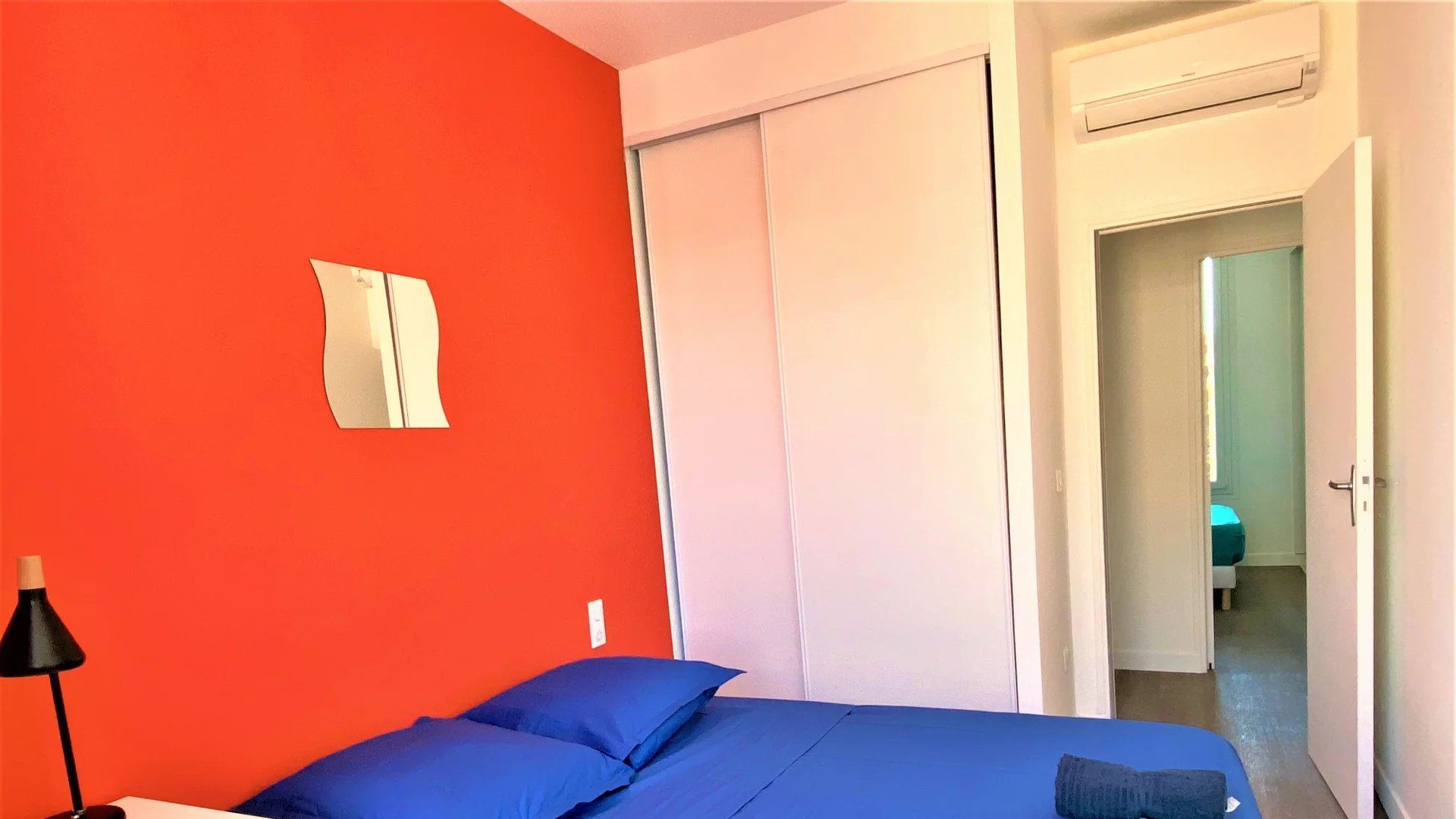 Cet appartement, au plan en étoile, est composé de la façon suivante: une belle entrée donnant accès à un séjour/cuisine (cuisine équipée et fonctionnelle, en très bon état, refaite en 2021), un petit coin séjour aménagé (canapé, table basse, TV, mobilier changé en 2021), 2 jolies chambres entièrement aménagées (lit, placard mural, bureau, mobilier changé en 2021), d'une salle de douche entièrement refaite, très fonctionnelle, avec W.C et sèche-serviettes électrique.