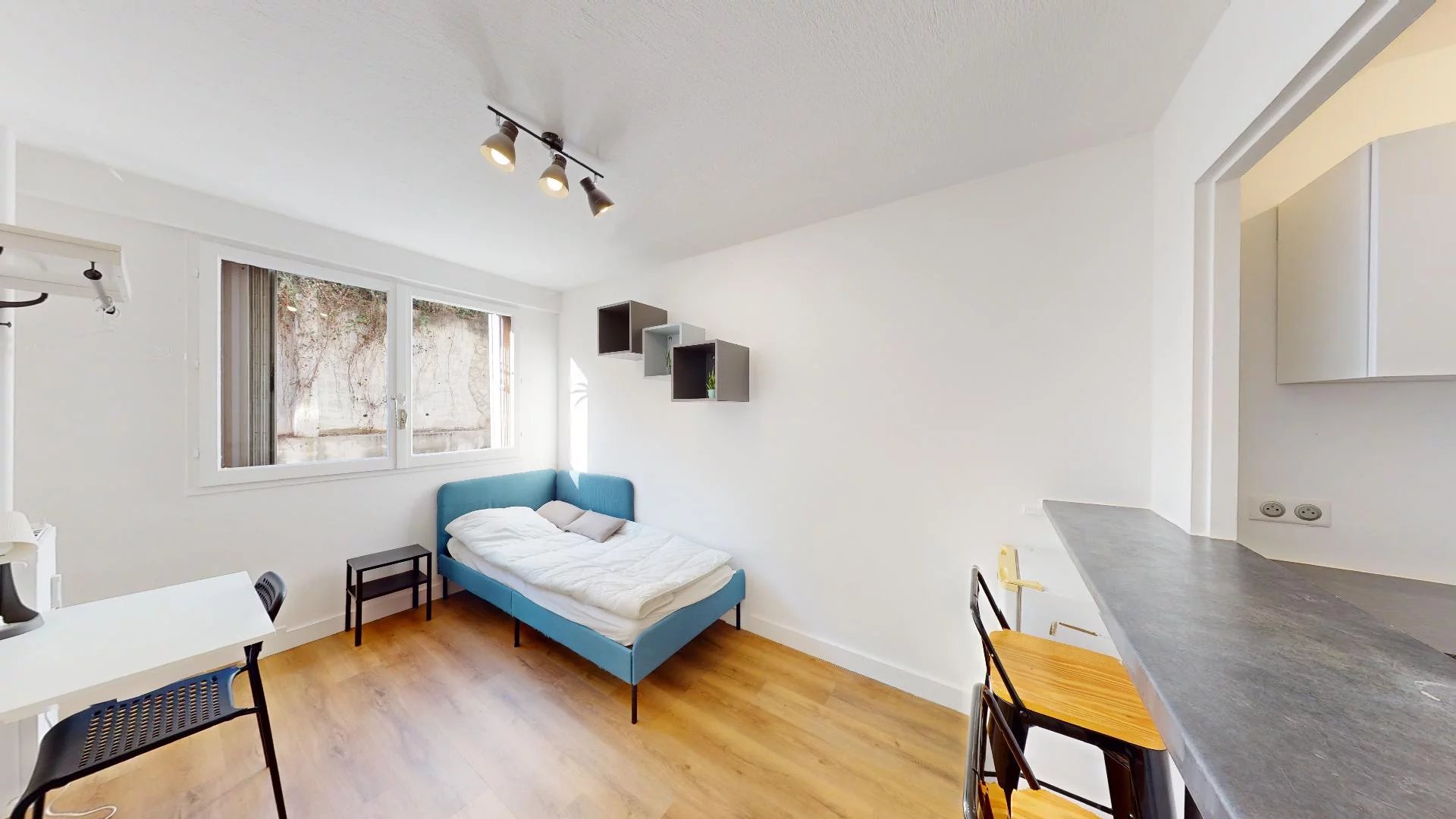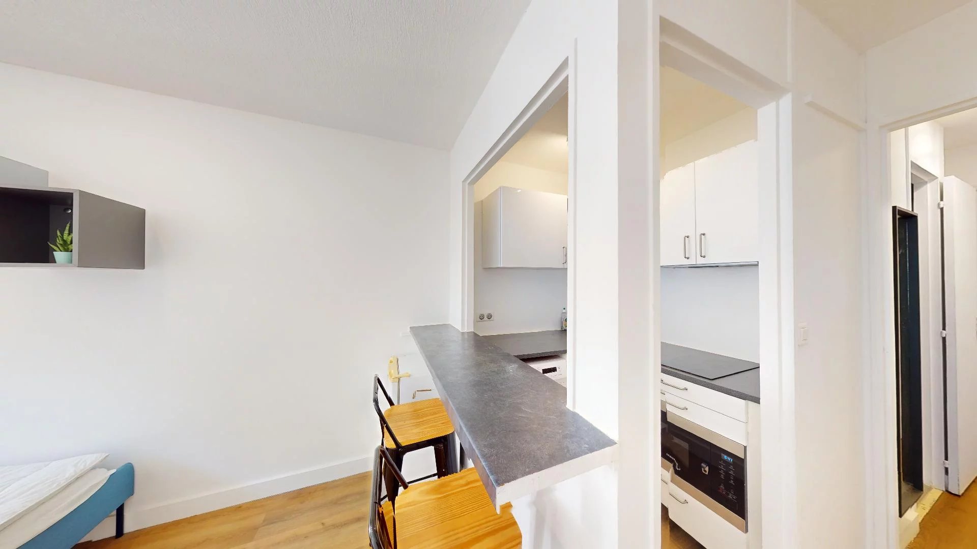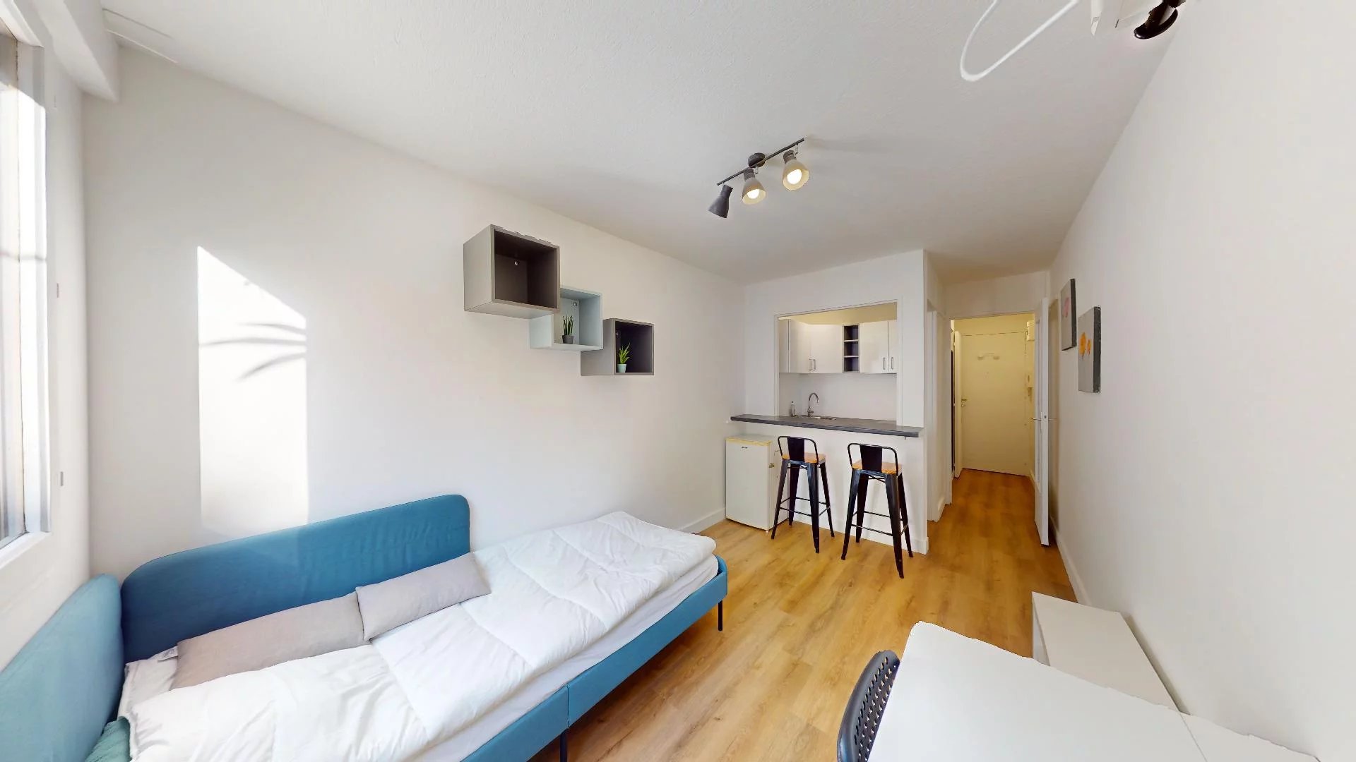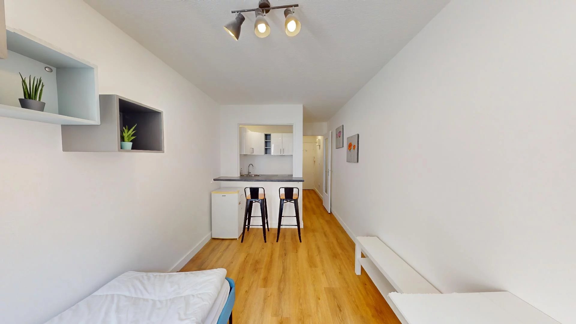Cet appartement d'une surface de 18m² est composé comme suit : Une pièce de vie lumineuse avec une cuisine ouverte aménagée et équipée et une salle d'eau avec W.C suspendus. La fibre est réliée à l’immeuble.