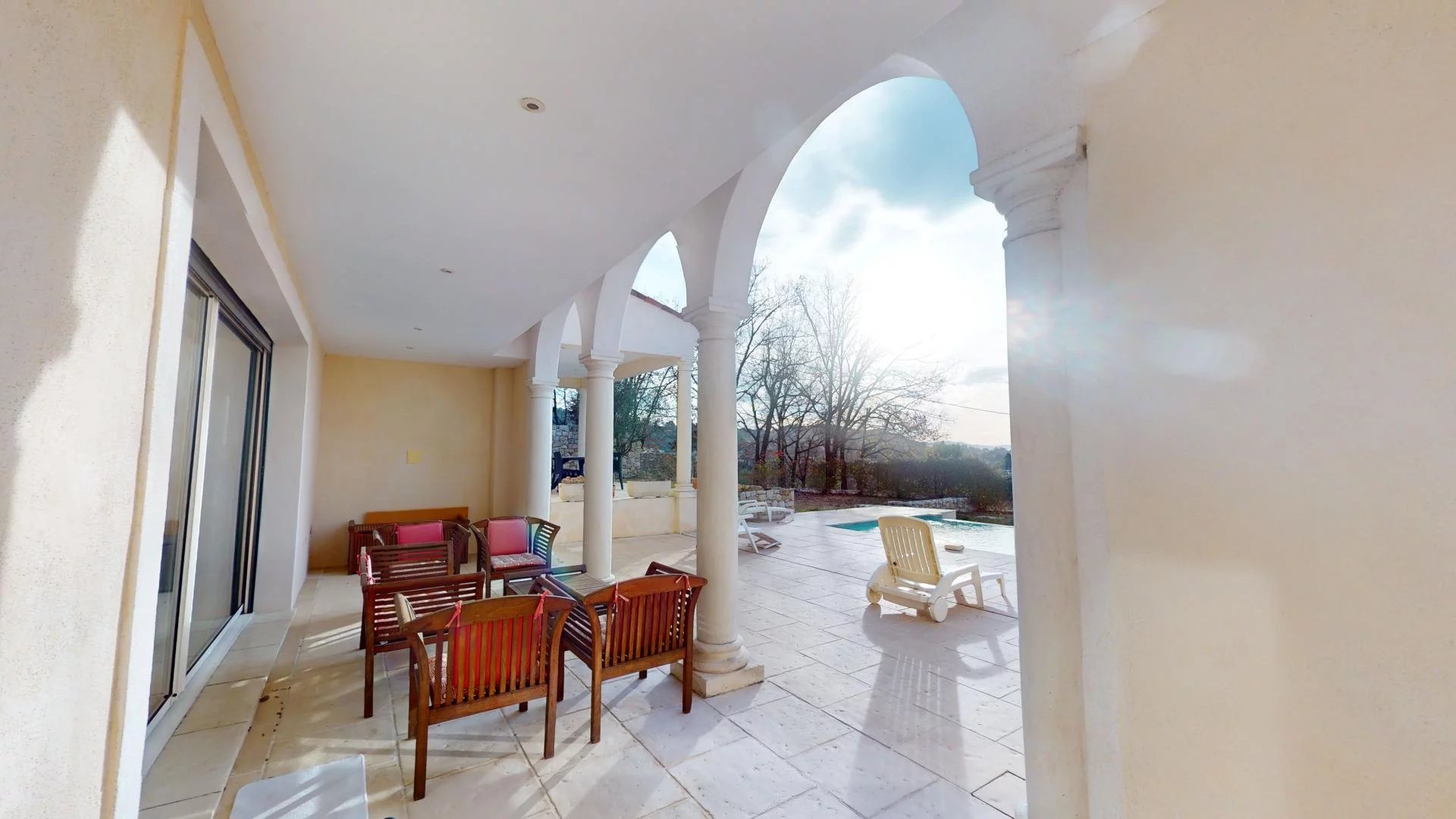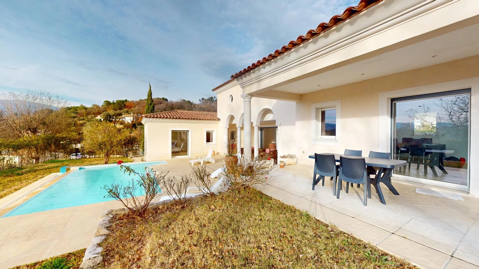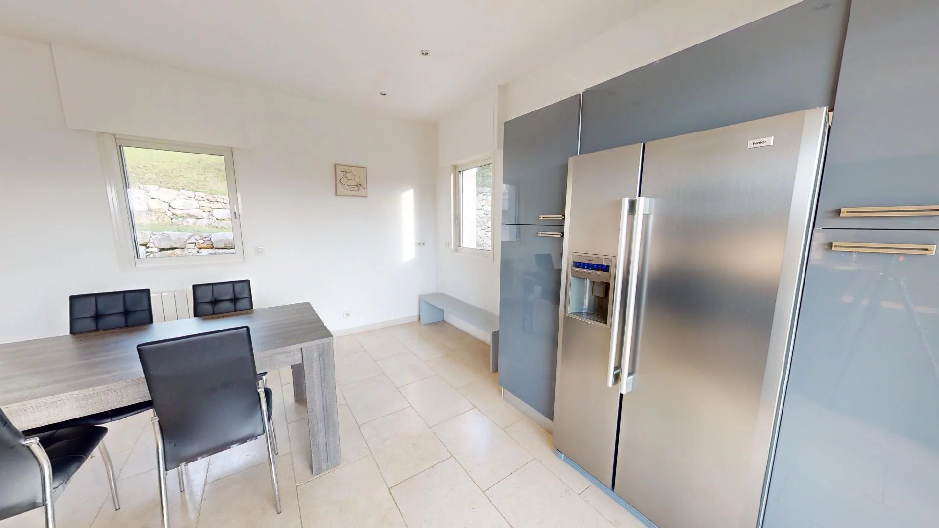 S'agissant de l'extérieur, ce jardin de 2000m2 dispose d'une grande terrasse couverte de 21m2, d'une seconde de 15m2 et d'une superbe piscine à débordement. Vous saurez apprécier l'espace détente avec salon de jardin donnant sur une végétation variée et une vue panoramique sur les montagnes.
