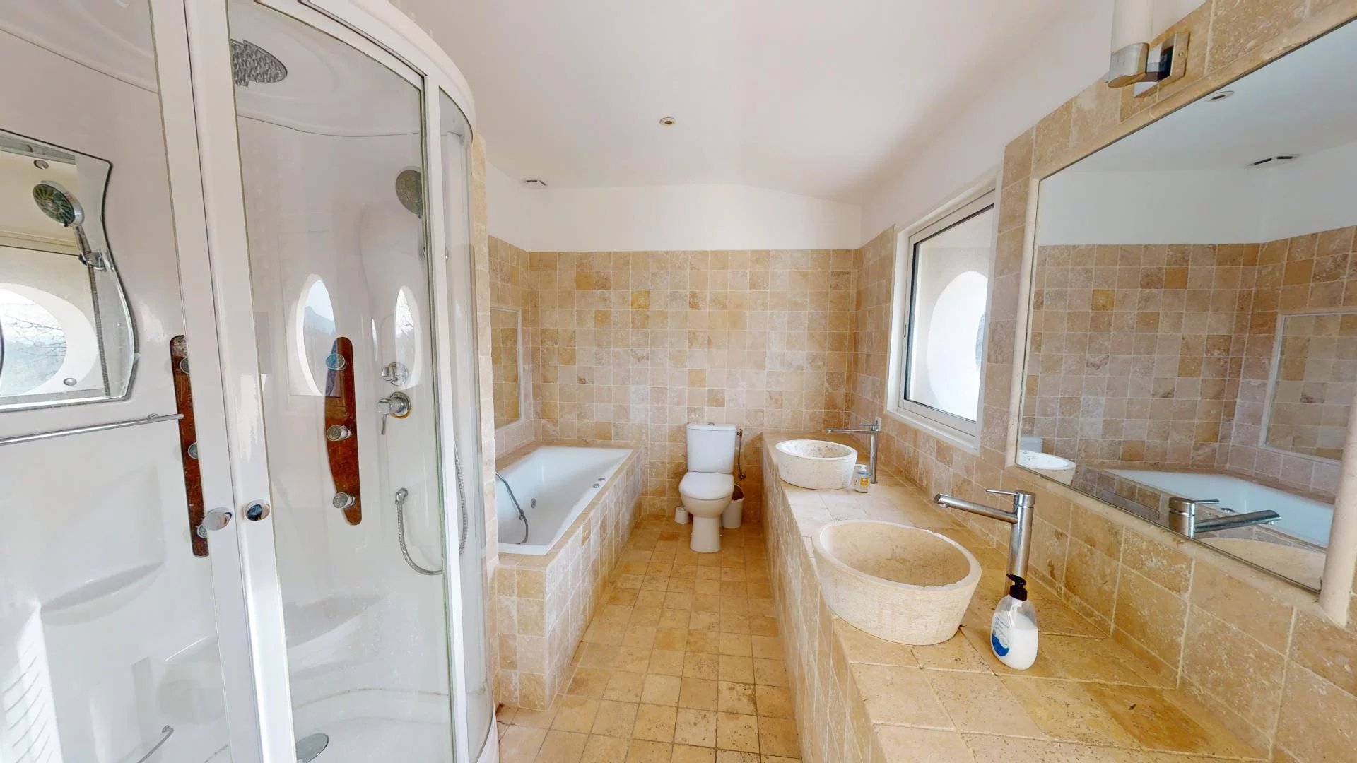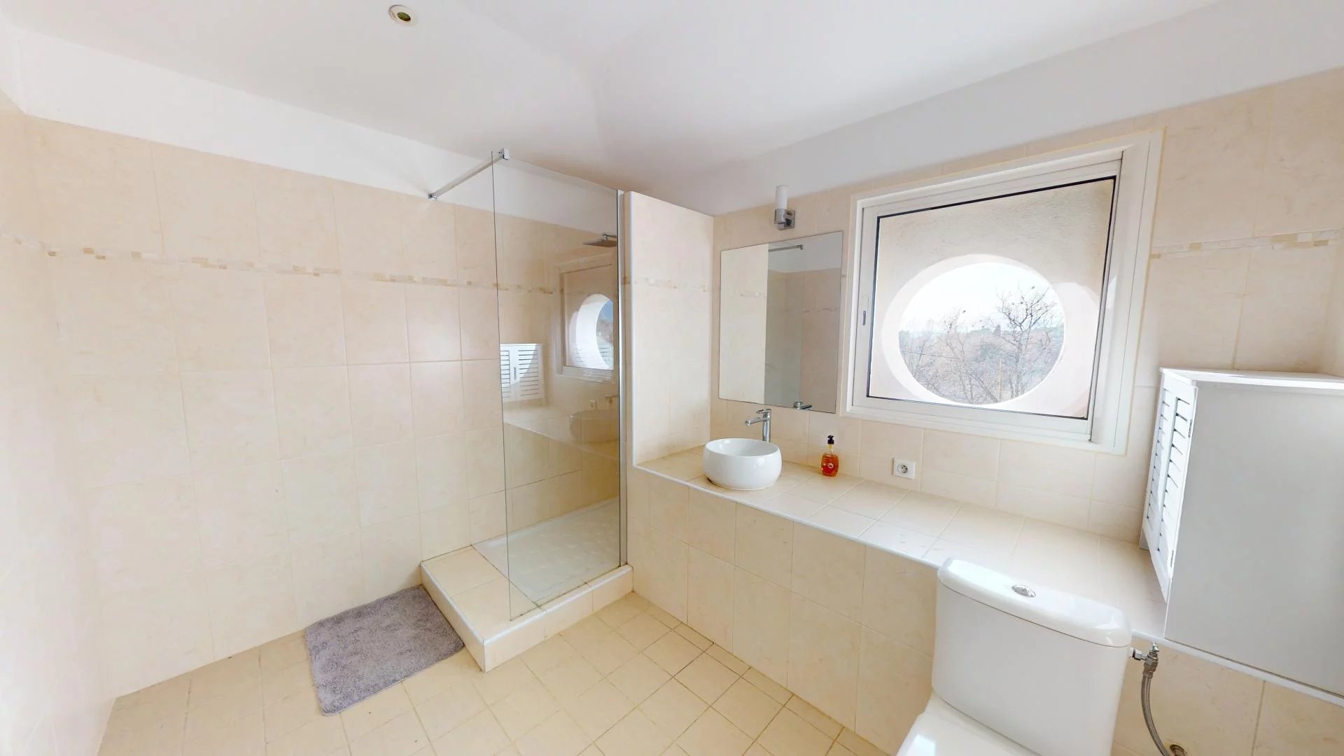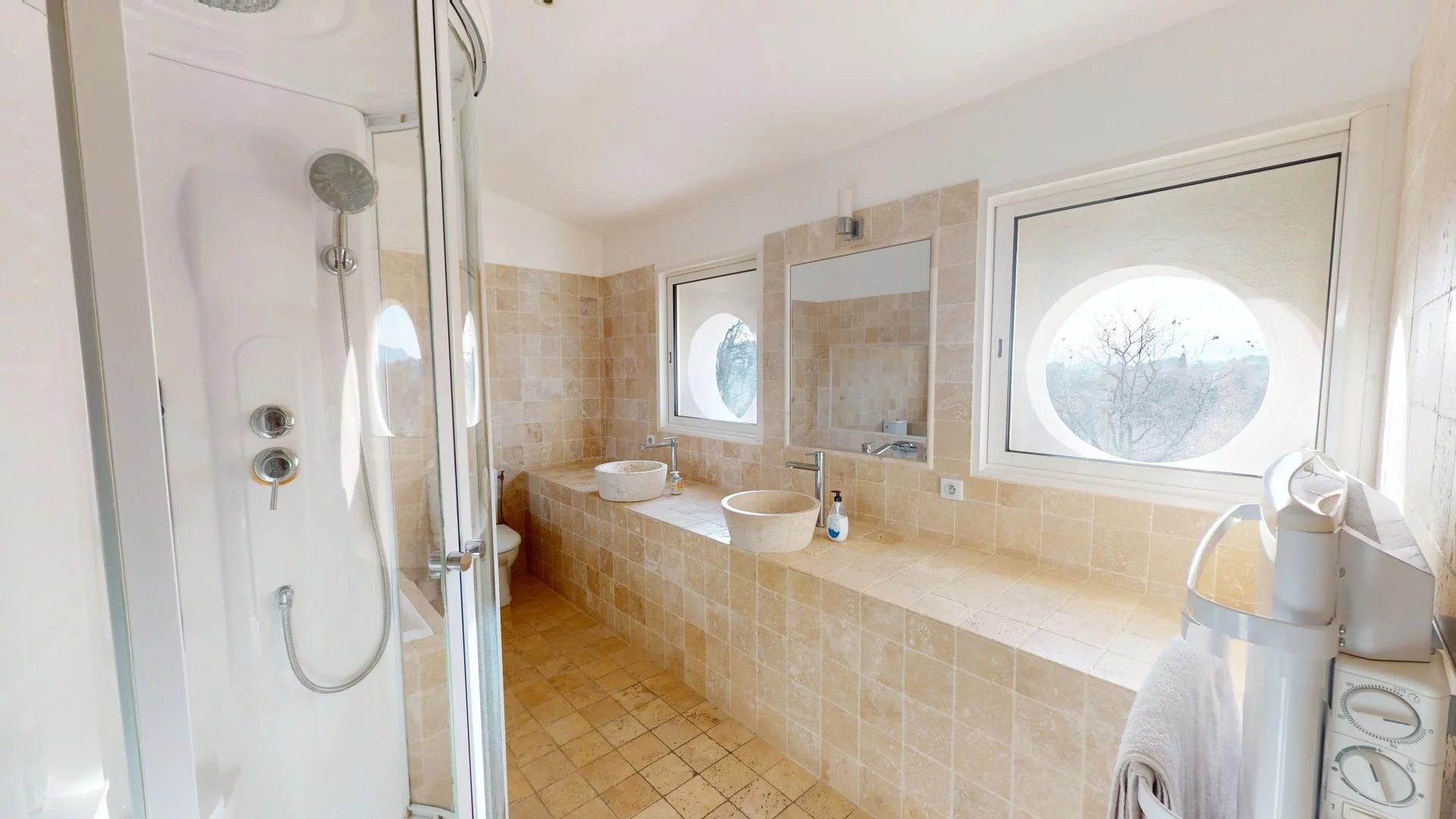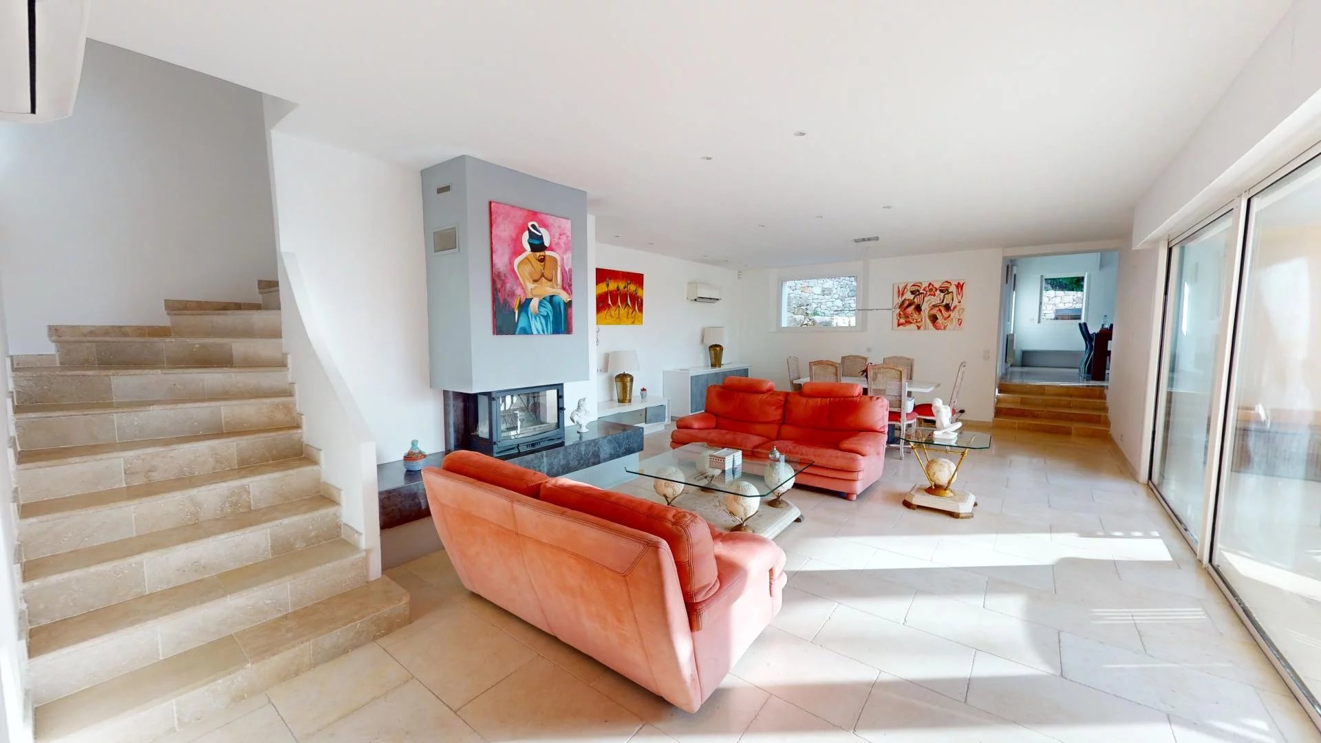 S'agissant de l'extérieur, ce jardin de 2000m2 dispose d'une grande terrasse couverte de 21m2, d'une seconde de 15m2 et d'une superbe piscine à débordement. Vous saurez apprécier l'espace détente avec salon de jardin donnant sur une végétation variée et une vue panoramique sur les montagnes.