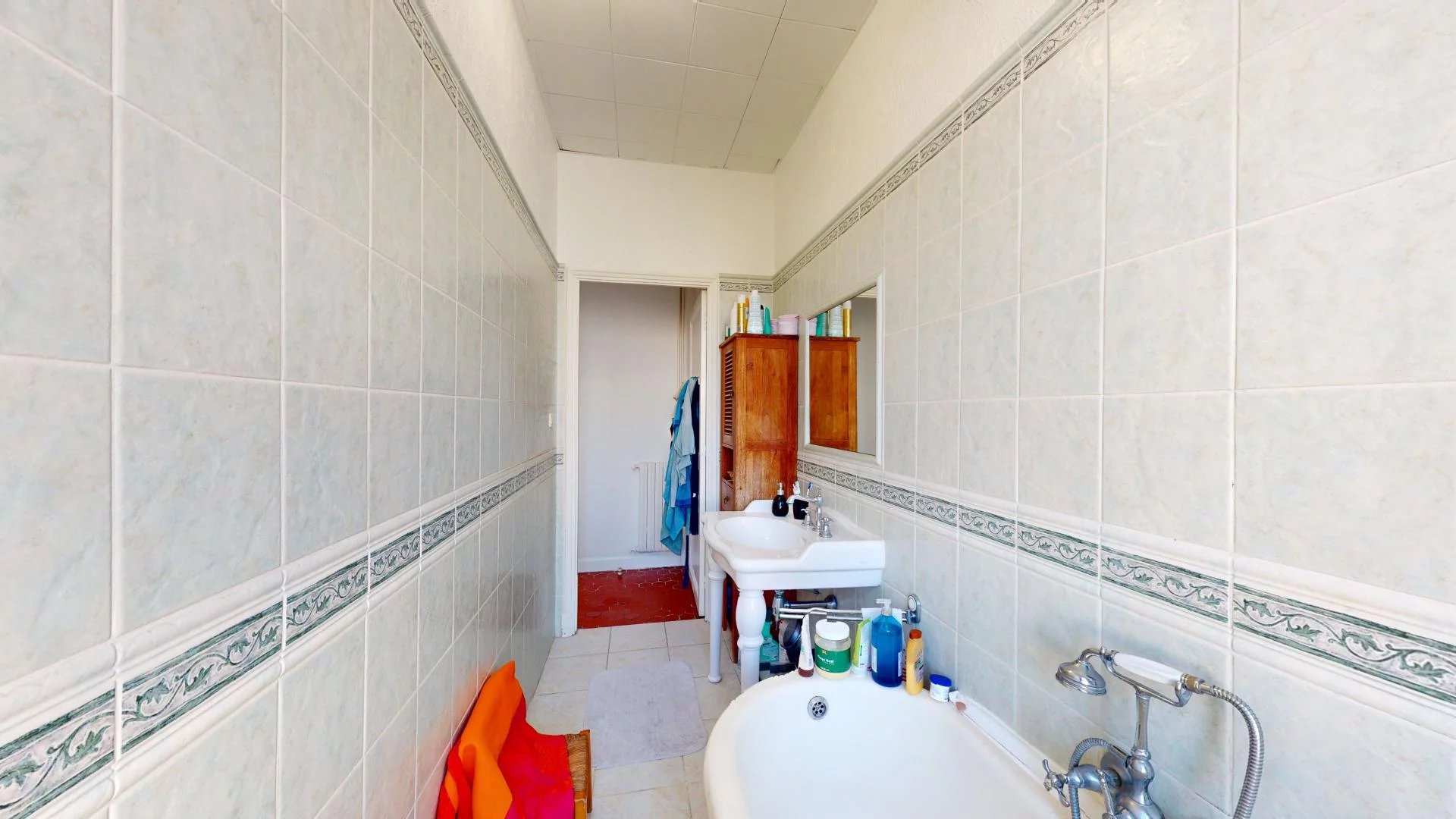 Cet appartement a été pensé pour vous offrir un espace de vie confortable et accueillant. Vous retrouverez une entrée donnant sur une pièce de vie spacieuse, dotée de grandes fenêtres apportant de la luminosité dans cette pièce et disposant d'un BALCON SANS VIS-A-VIS et exposé PLEIN SUD, une cheminée d'époque qui peut être réutilisable, une grande salle de bains avec baignoire îlot, une cuisine aménagée, deux chambres avec placards de rangement, un W.C indépendant ainsi qu'un grenier potentiellement récupérable.