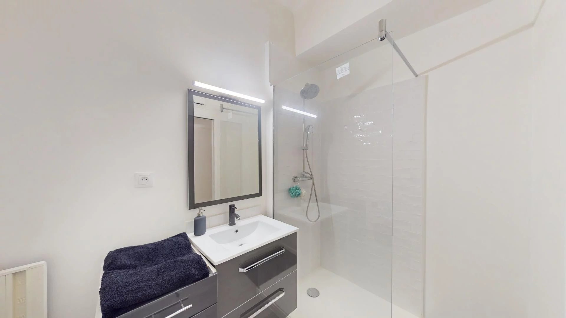 AV DE BRANCOLAR - Dans un immeuble moderne très bien tenu, il s'agit d'un SUPERBE studio disposant d'un plan optimisé sans aucune perte de place, composé d'une entrée, d'une pièce à vivre avec cuisine et SANS VIS-A-VIS et d'une salle d'eau avec DOUCHE A L'ITALIENNE et W.C.